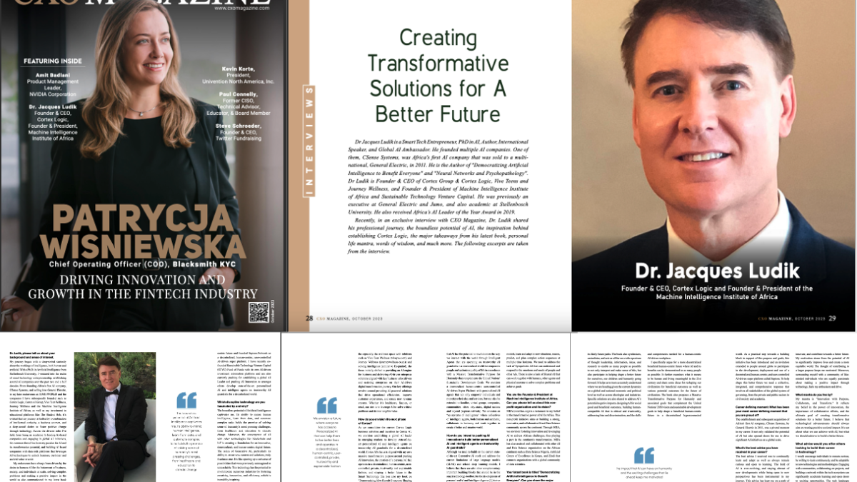 Dr Jacques Ludik :”Thanks for the honour to be featured in the global edition of CXO Magazine® and discussing ‘Creating Transformative Solutions for A Better Future’.”