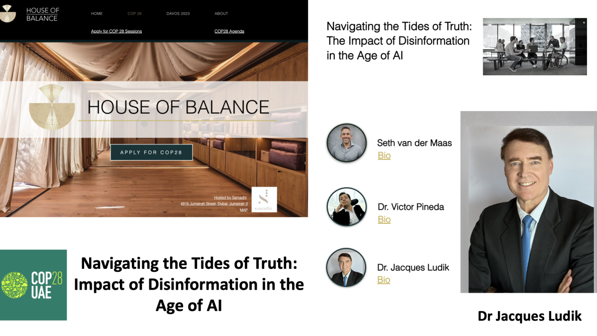 Looking forward to participate in next week’s House of Balance’s event, linked to United Nations @COP28_UAE UAE, from 5-7 December 2023 in #Dubai. We’ll be discussing “Navigating the Tides of Truth: The Impact of Disinformation in the Age of #AI”